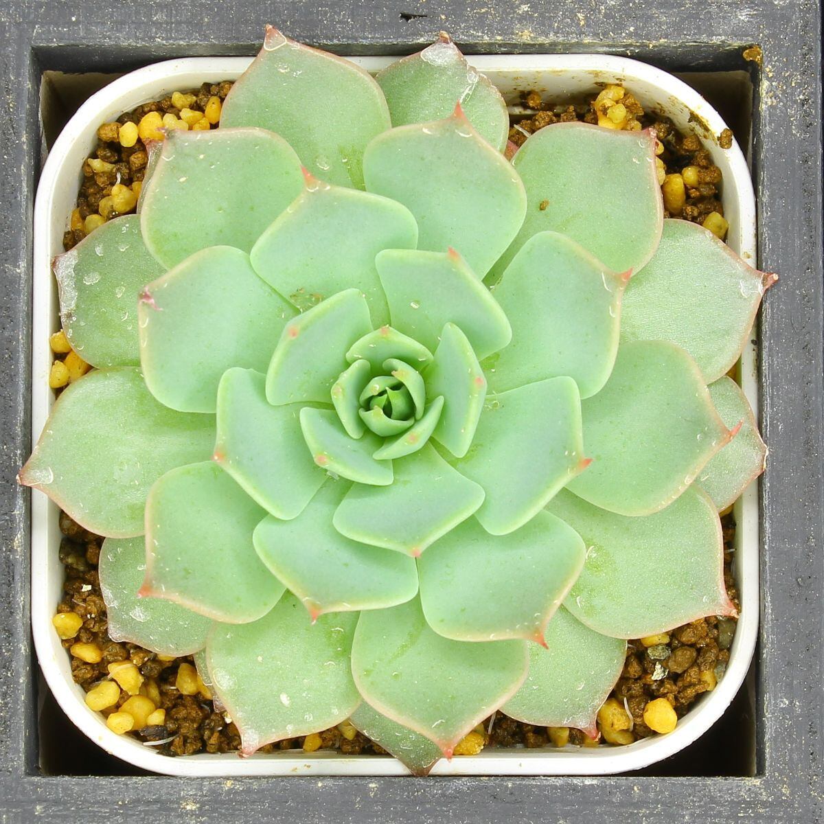 セクンダのバリエーションのひとつとされるセクンダシチュ。薄い丸葉にちょこんと小さい爪が付くイメージの強いセクンダですが、シチュは比較的シュッと細長い爪を持ったシャープな種。キール(葉の稜線)の発色もキリっとはっきりしている特徴があり、他のセクンダとは違った印象があります。
