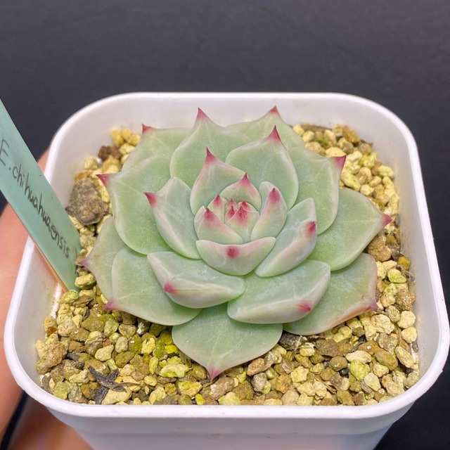 安定の美しさで人気の高いチワワエンシス。夏の暑さ、冬の寒さにも強く、初心者の方にも手に取りやすい原種です。その中でも近年最もポピュラーなのがこのチワワエンシスジェコラ。種子も多く流通しており、様々なショップで実生株を見かけます。実生株は爪の大きさ、葉幅の広さ、葉挿しの出やすさに至るまで個性いろいろ。複数手に入れて比べながら育てていくのも面白い品種です。